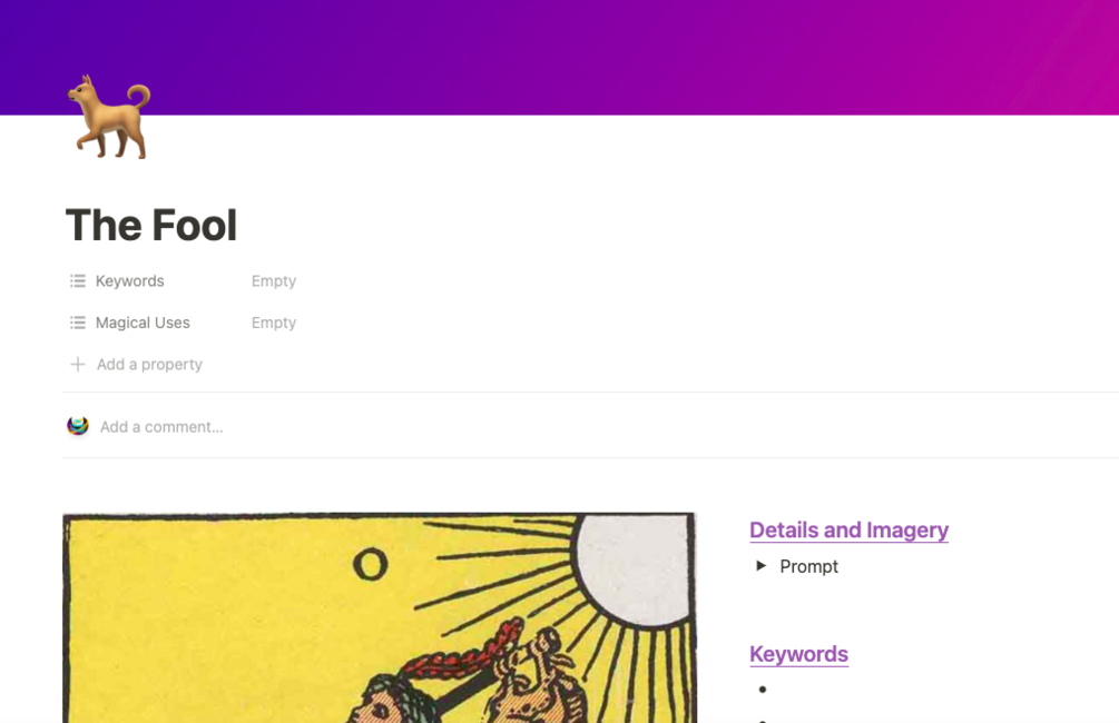 You'll get a tarot dashboard with a workbook to learn tarot, a collection of spreads, a template for a daily check in, and more.